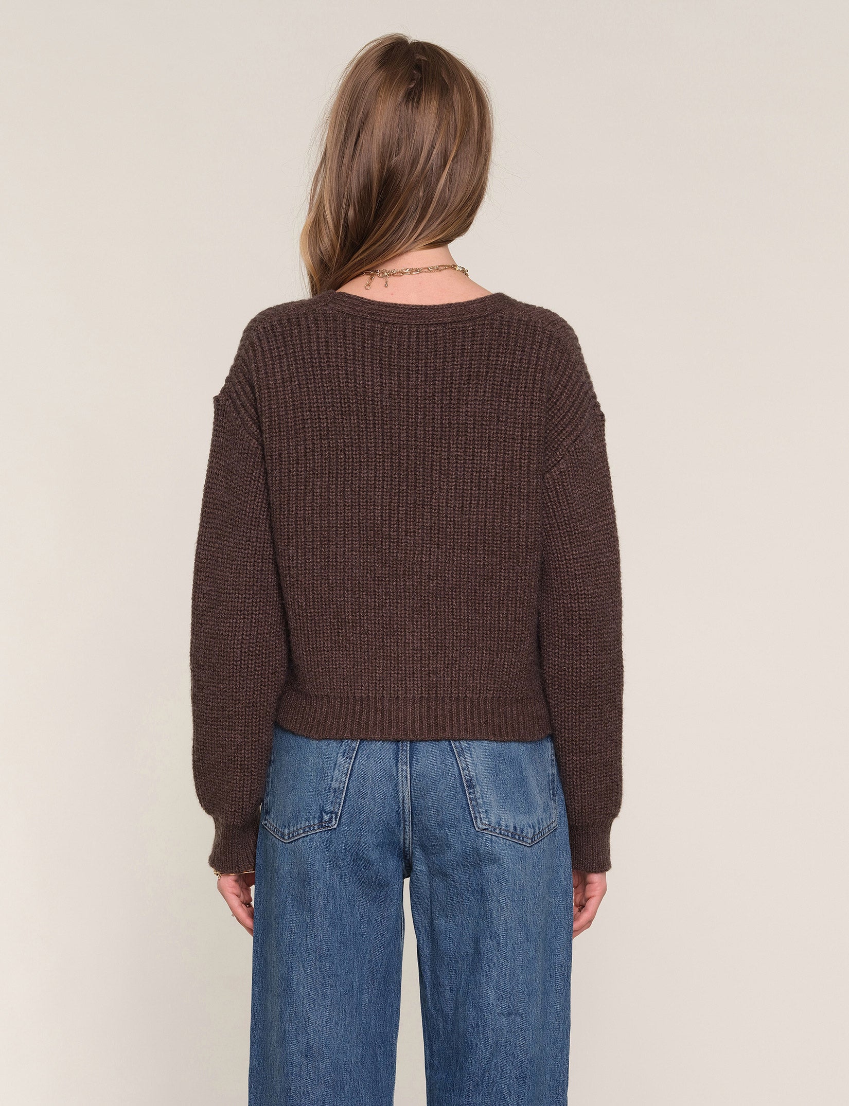 The Adelias Cardi is a v-neck, ribbed sweater with dropped shoulders and a relaxed fit. It features a pretty, floral embroidery at front body.