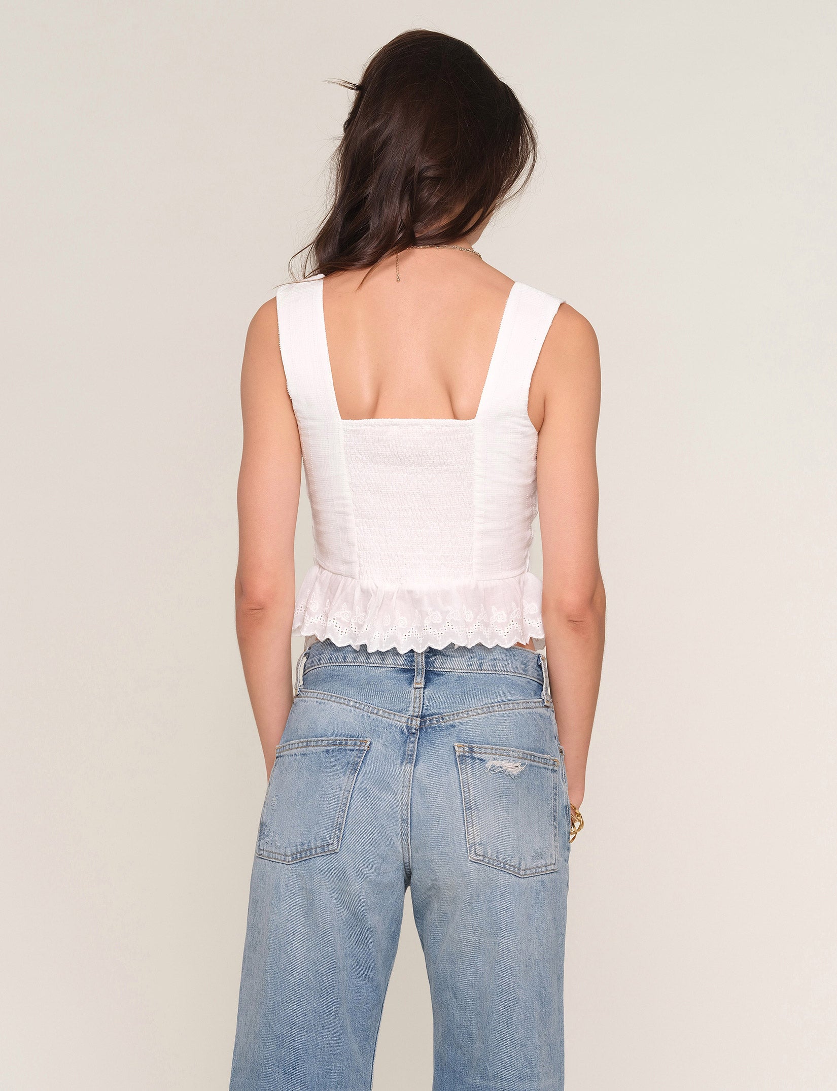 The Christine Top is a Heartloom essential. Made from a cotton voile it features delicate pintucks, a hook & eye closure and a lace ruffle at the hem. It has smocked back for ultimate fit.
