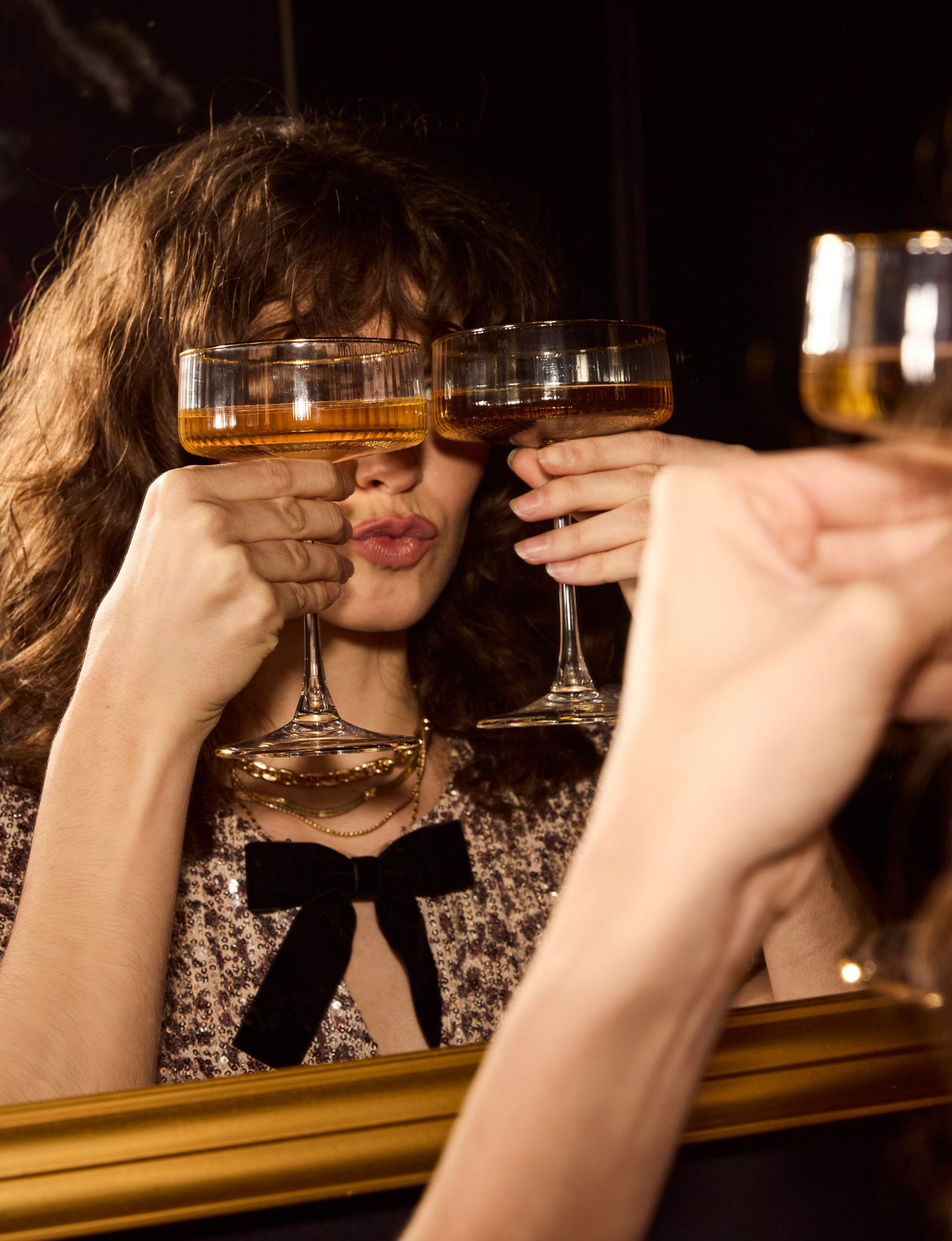 The Debbie Dress is the ultimate party dress. It features a slim fit and an all-over sequin fabric. It has buttons at the center front and a velvet bow at the neck.
