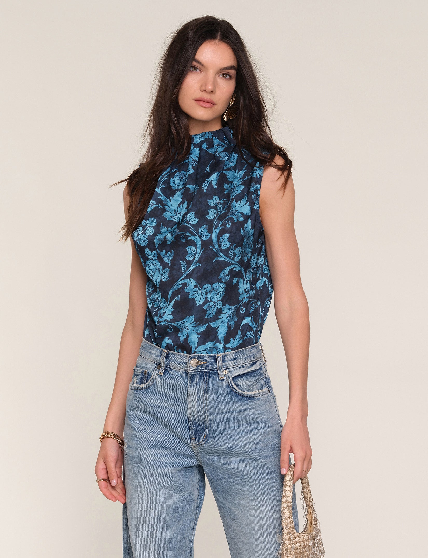 The Heidi Bodysuit is made from a printed, crepe de chine. It features a draped neckline, and a slim fit. Tuck it in to your favorite pants or jeans.