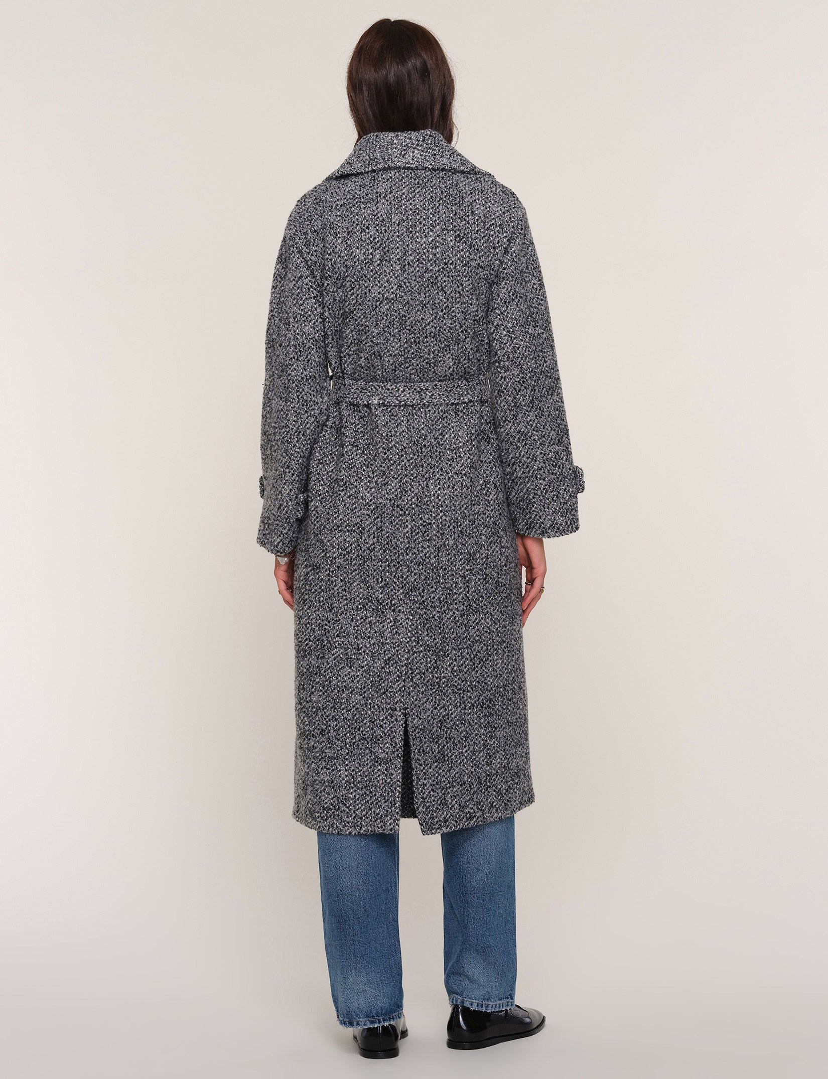 The Tiffie Coat is a long, relaxed fit wool coat. It features an oversized lapel and removable belt. This coat will keep you feeling warm and looking stylish.